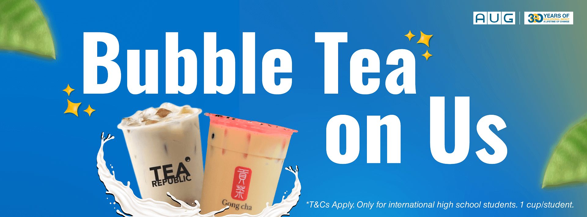 Tham gia sự kiện Bubble Tea On Us và nhận ngay trà sữa miễn phí khi ghé qua trò chuyện cùng đội ngũ AUG. Dù bạn đang tìm hiểu về du học, chuẩn bị cho bước tiếp theo, hay chỉ muốn có buổi chiều vui vẻ, đây là dịp hoàn hảo để thư giãn và thưởng thức ly trà sữa ngon tuyệt! 😋✨
