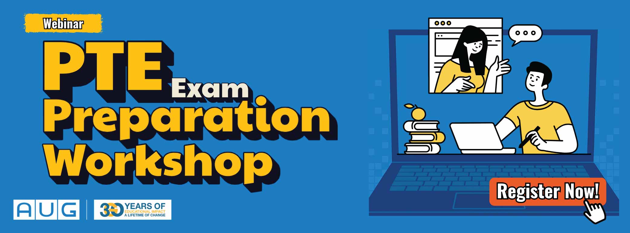Join our online PTE Preparation Workshop to get an overview of the PTE test format and receive a free mock test voucher.