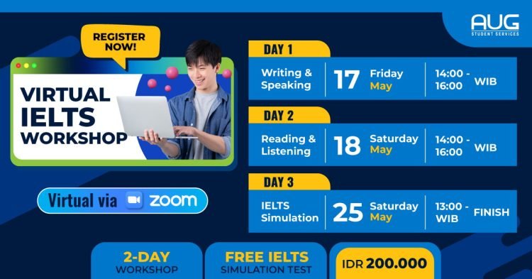 Lagi ada rencana ambil IELTS? AUGians lagi persiapan untuk tes IELTS? Kembali lagi dari AUG Student Services, Virtual IELTS Workshop!