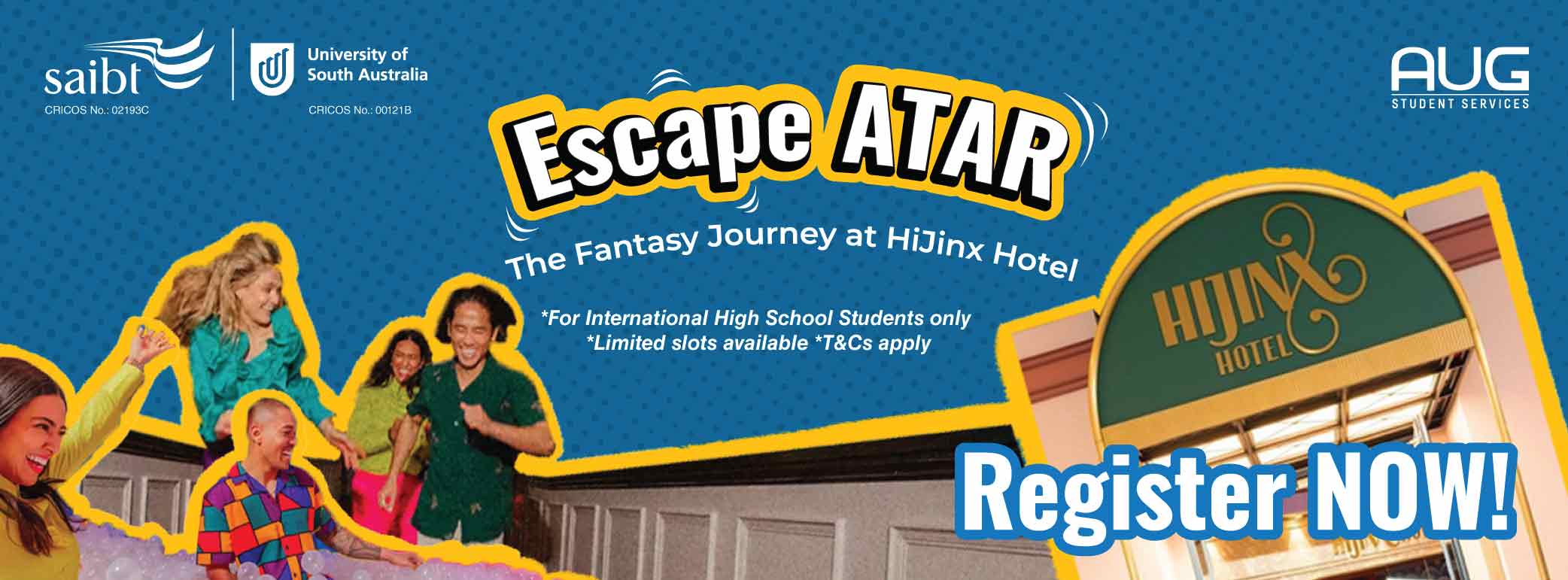 Hãy tham gia cùng AUG Adelaide để có một buổi chiều Thứ Sáu tràn đầy niềm vui cùng các bạn Học sinh Trung học Quốc tế của bạn, vui chơi và khám phá các phòng thử thách khác nhau tại điểm đến thú vị nhất của Adelaide.