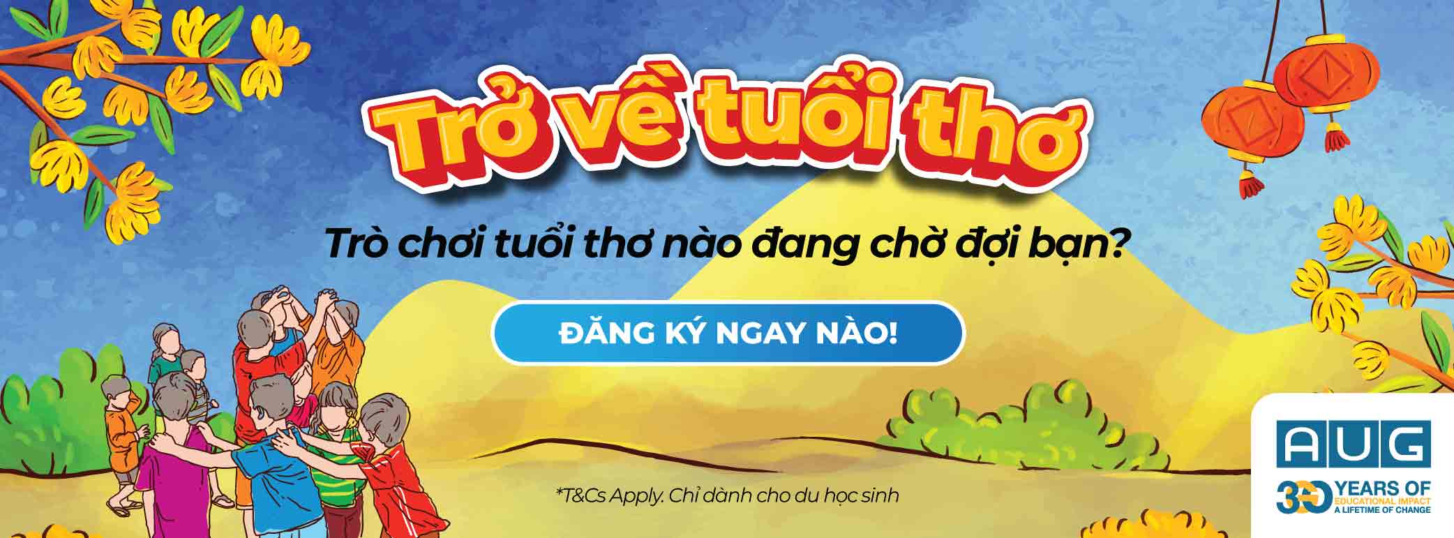 Lần đầu tiên tại Melbourne, AUG mang đến sự kiện “Trở Về Tuổi Thơ”, nơi du học sinh Việt có thể quay ngược thời gian, cùng nhau chơi Rồng Rắn Lên Mây, Tam Sao Thất Bản và nhiều hoạt động bất ngờ khác!