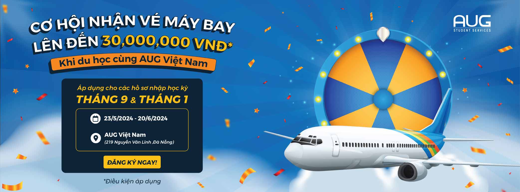 Kỳ nhập học tháng 9 và tháng 1 đã đến rồi, các bạn đã sẵn sàng chưa? Nộp hồ sơ nhập học cùng AUG Việt Nam để có cơ hội nhận ngay vé máy bay lên đến 30,000,000 đồng.