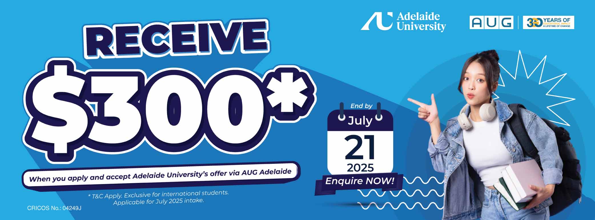 Don’t Miss Out: Apply to Adelaide University and Receive A$300 with AUG!
