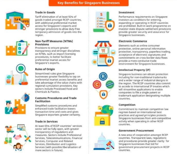 2020年11月15日,新加坡与中国等14个国家正式签署《区域全面经济伙伴关系协定》(RCEP)。 迄今为止世界上最大的自由贸易协定(FTA).